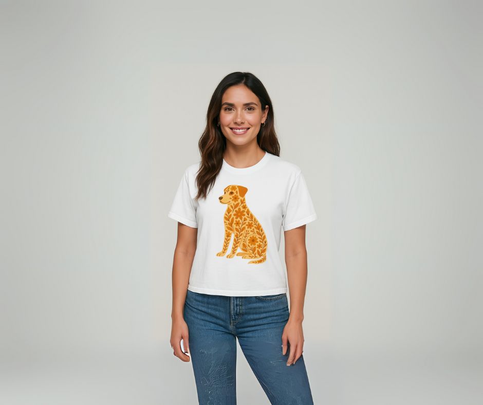 Camiseta “Dog Floral” – Algodón Grueso con Diseño Artístico